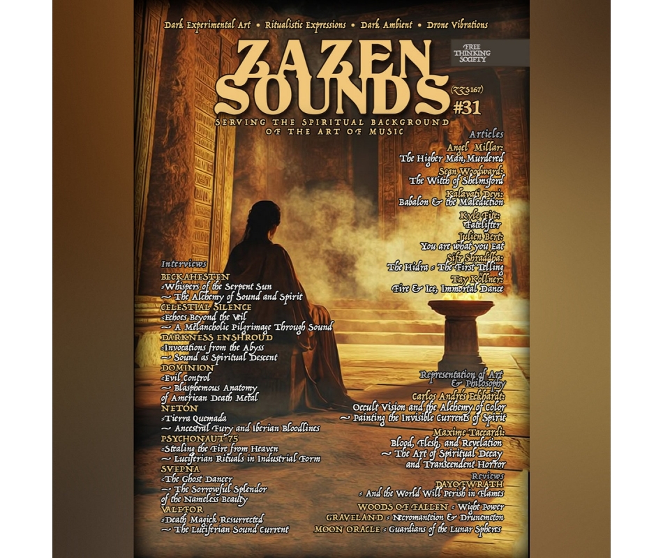 This is the new Issue by Zazen Sounds Esoteric Publication. 64 pages dedicated to the Art and Esotericism. We are a free thinking society and welcome all the Individuals that is free by Dogma-Fanatism and Blindness. True Spirituality means Liberation from the Bounds and all kinds of Drugs that society offers & enslave the Individual in Mind and flesh and alter his mind's perspective to transformation and enlightment through empiricism. Spirit Above Matter!