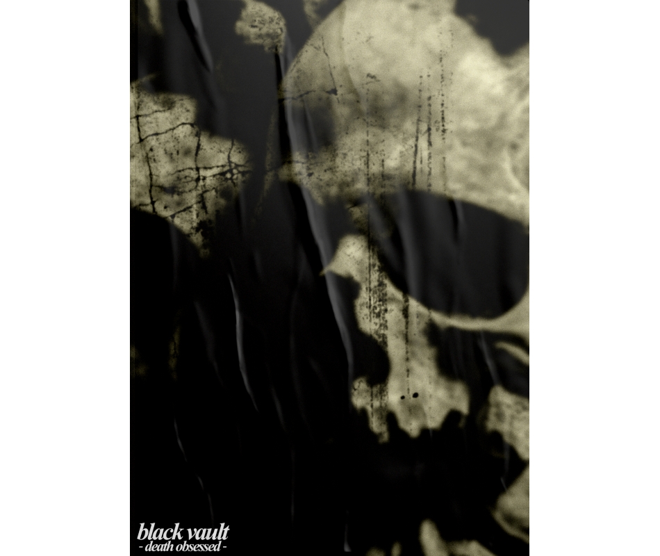 Official Poster of of danish Industrial act BLACK VAULT for the new album Death Obsessed.